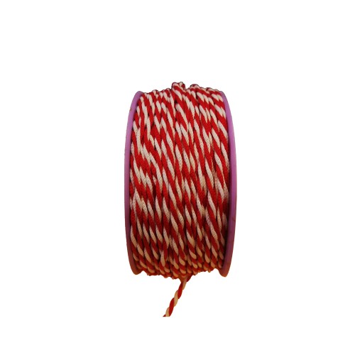 Βαμβακερό κόκκινο-λευκό δίκλωνο κορδόνι 3mm .Aριστη ποιότητα φιλικό προς το δέρμα...